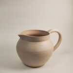 Pieza de vajilla utilitaria realizada con pasta compuesta por arcillas locales y la superposición de dos esmaltes no tóxicos de formulación propia. Acabado satinado e irregular aplicado con pincel