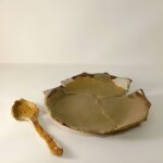 Pieza realizada a base de la colocación de láminas de arcilla local recogida en el término de Oliete ( Teruel). Esmalte realizado con arcilla local de baja, recogida en el término de Alacón (Teruel) y con arcilla de baja recogida en el término de Aguarón (Zaragoza), ésta última con alto contenido en hierro.