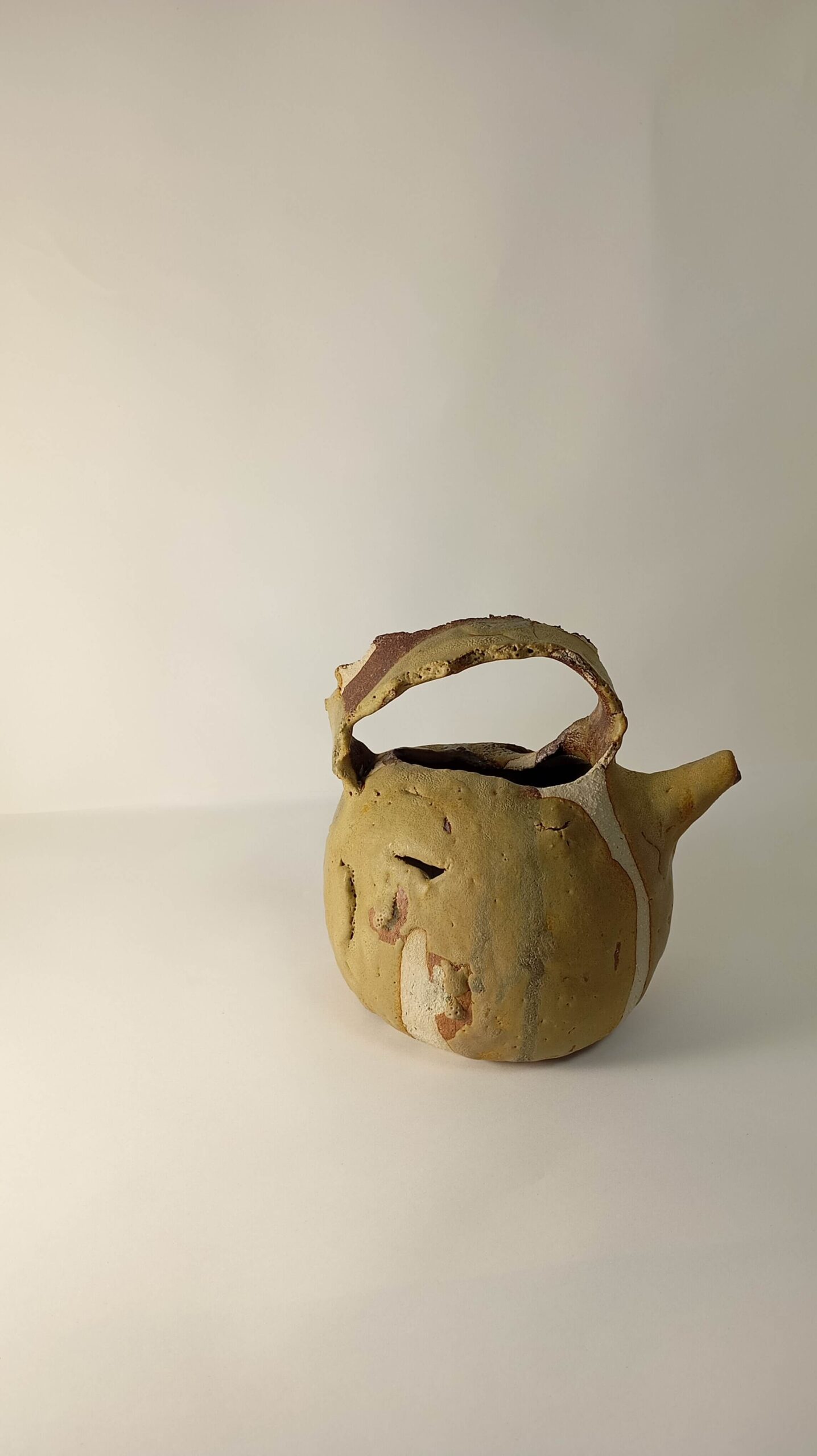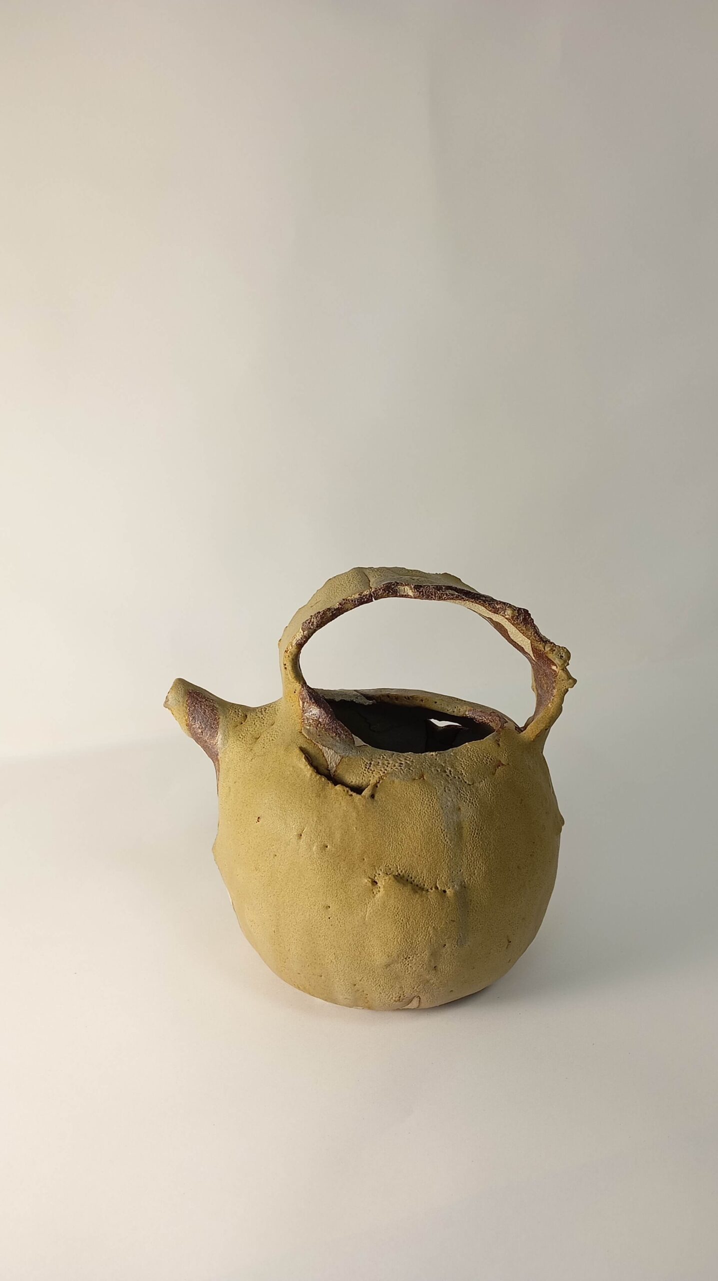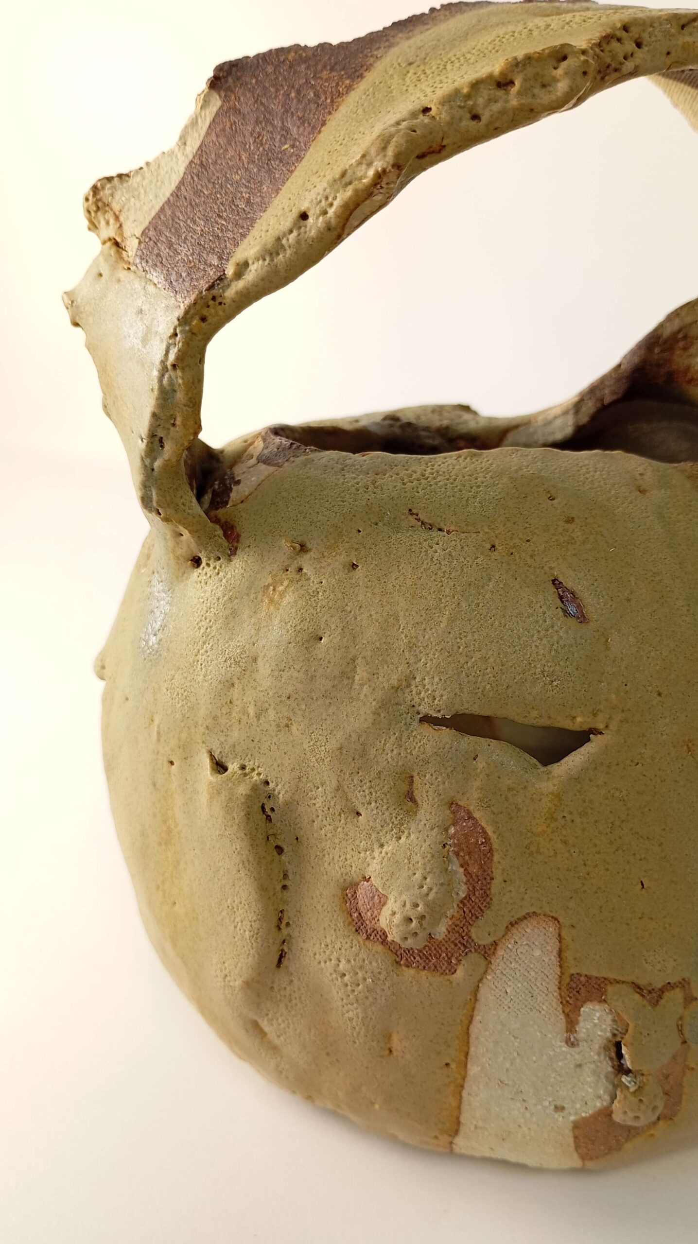 Piezas realizada a base de la colocación de láminas de arcilla local recogida en el término de Oliete ( Teruel). Esmalte realizado con arcilla local de baja, recogida en el término de Alacón (Teruel) y con arcilla de baja recogida en el término de Aguarón (Zaragoza), ésta última con alto contenido en hierro.