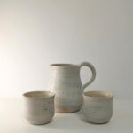 Piezas de vajilla utilitaria realizada con arcillas locales y esmaltes no tóxicos de formulación propia.