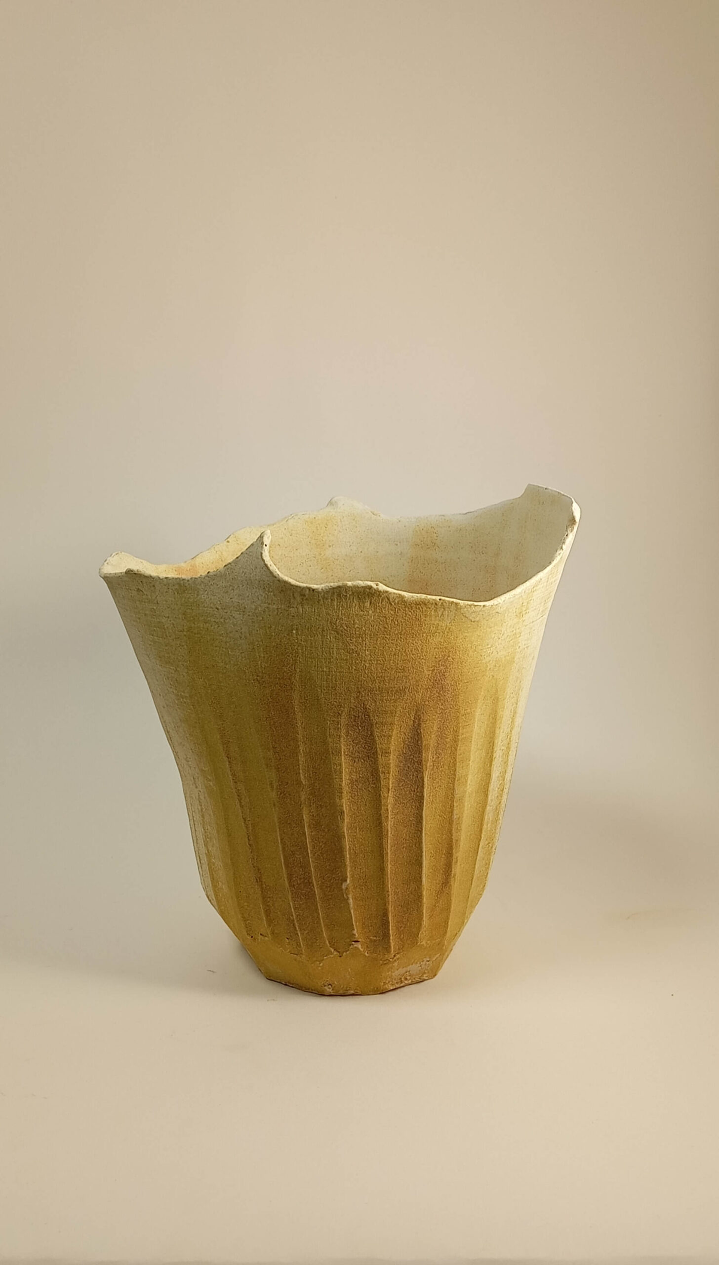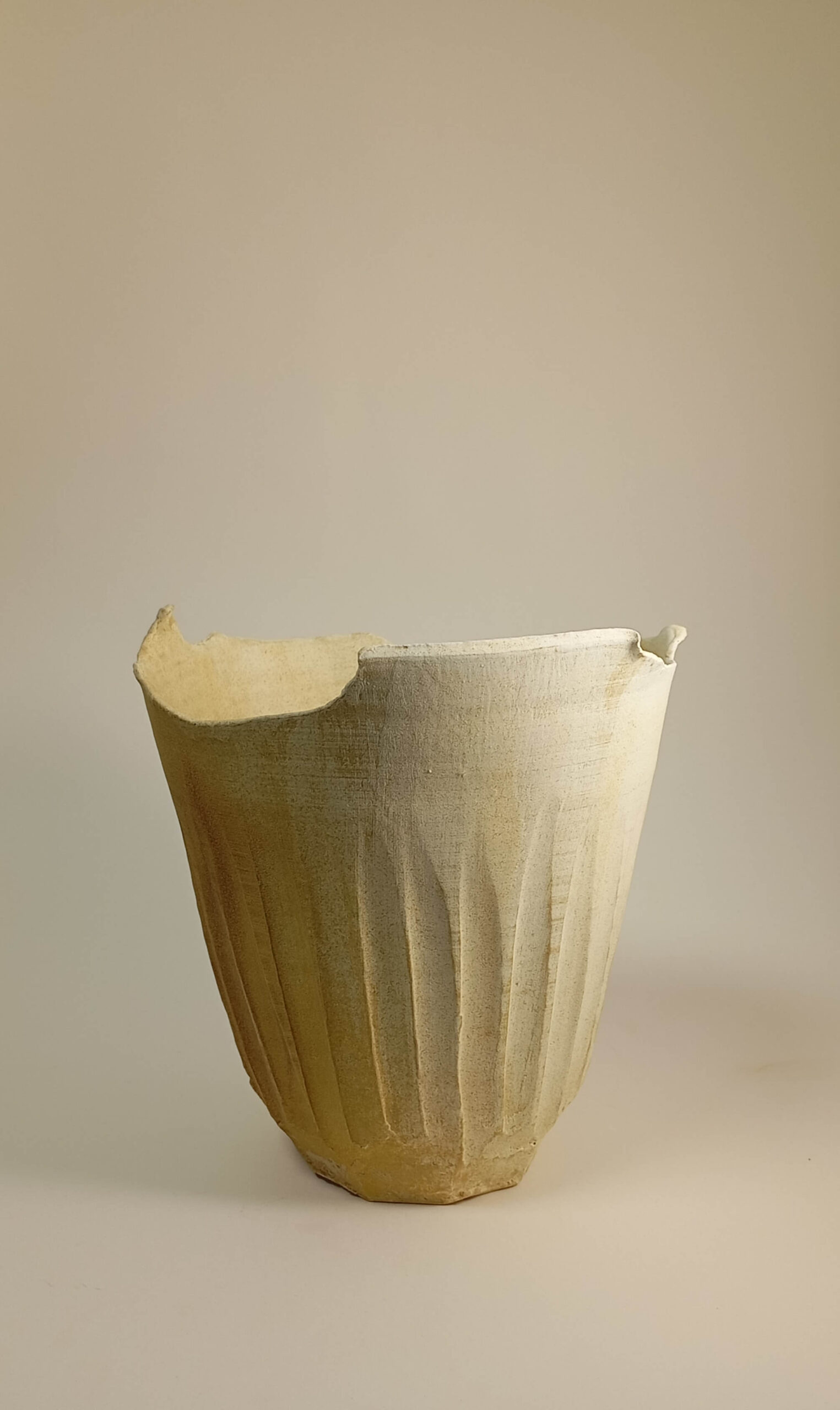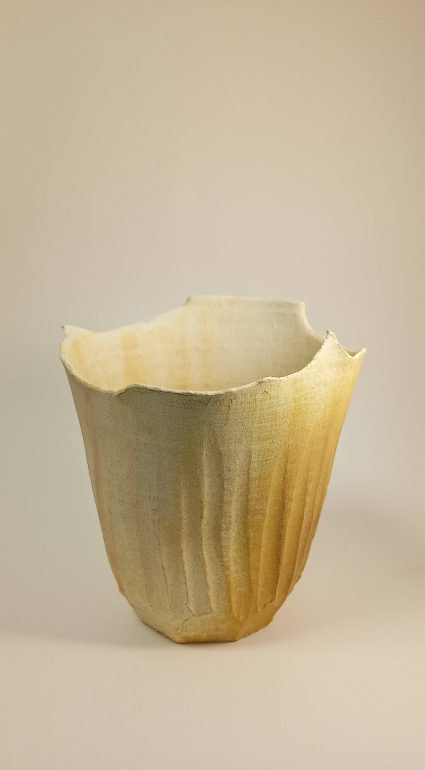Pieza realizada a torno con arcillas locales y óxido de hierro local introducido en una formulación de esmalte mate y aplicado con pincel sobre la pieza seca.