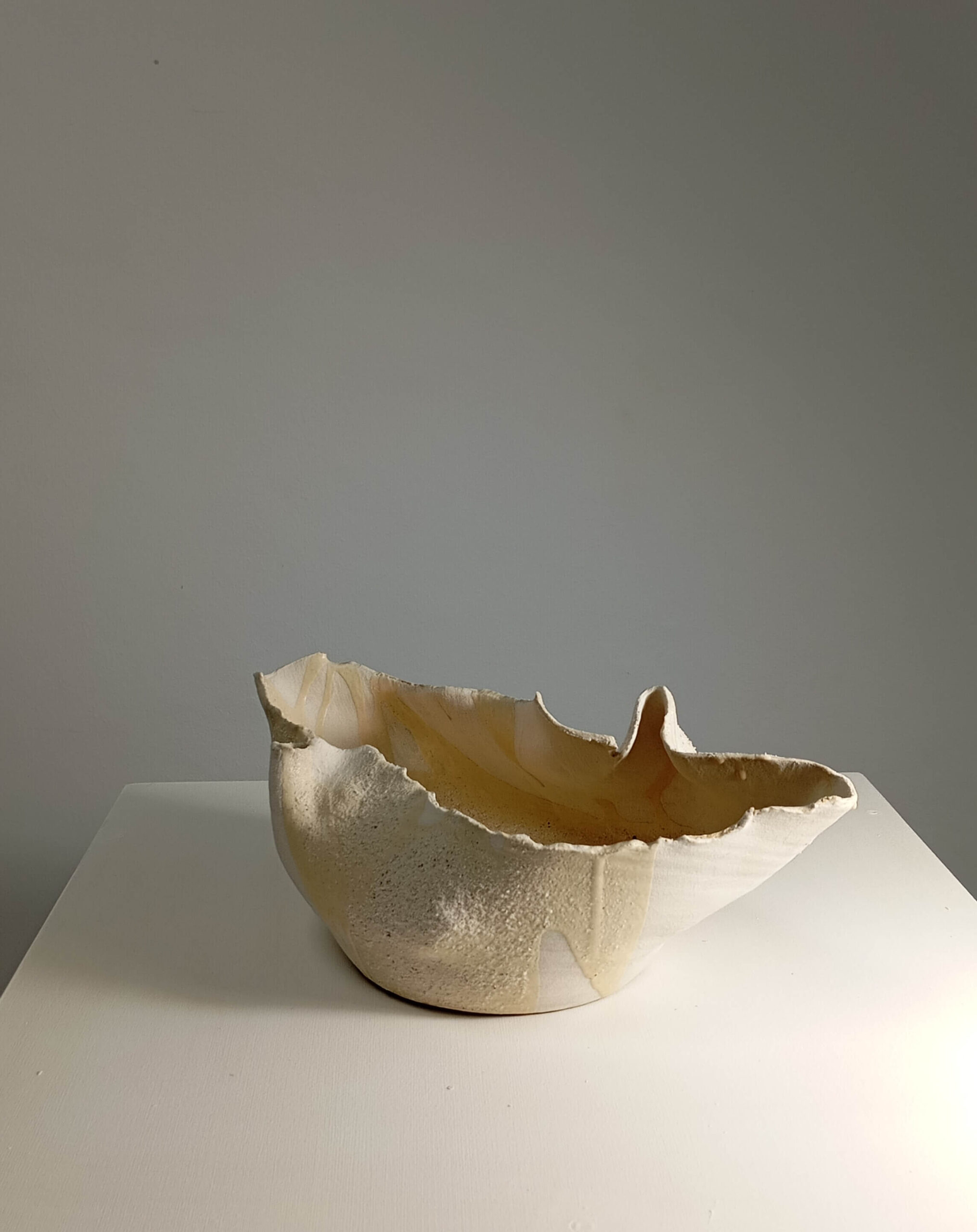 Pieza realizada a torno con arcillas locales y esmalte de formulación propia satinado, borra de arena blanca lavada y arena blanca.