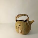 Pieza realizada a torno con arcillas locales y esmalte de formulación propia satinado, borra de arena blanca lavada y arena blanca.